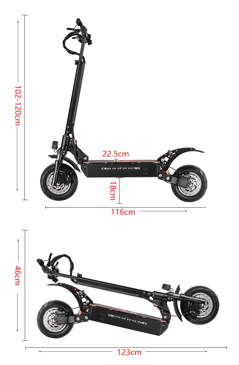 --Material: aluminum alloy --Front shock absorber, rear spring --Unfolding Size: 116*58*120cm |