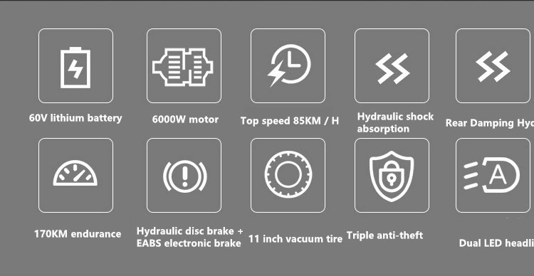 Motor Power : dual motor 60V 6000W (3000W * 2) |