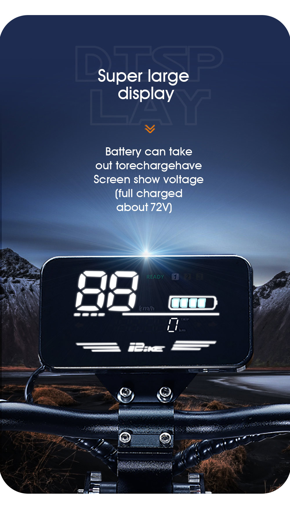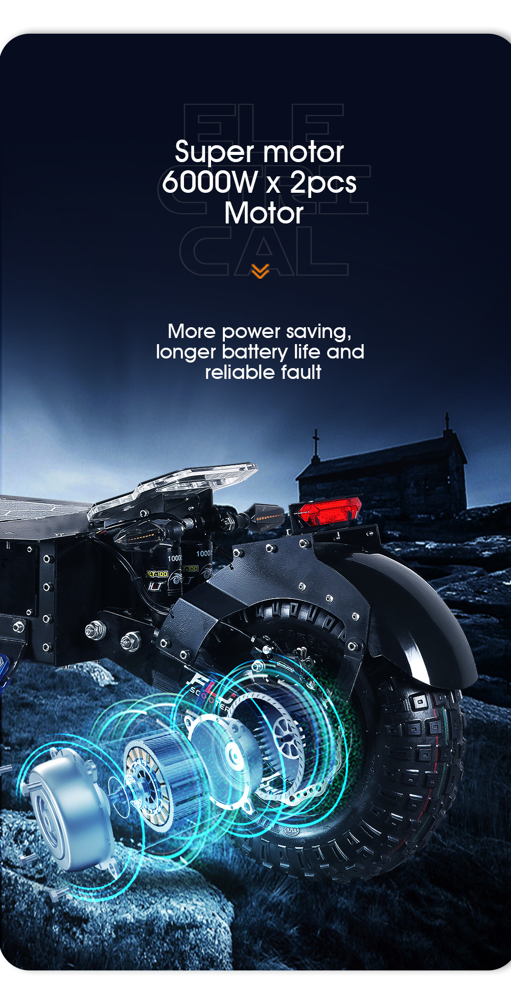2023 New Arriva Top Design / 14inch fat tire / 72V 12000W Dual motor/ 35-65AH Removeable waterproof Battery / 10A fast charging / Double rear Braking system / Max Speed 100-120km/h 62-74MPH / Range 60-200kms