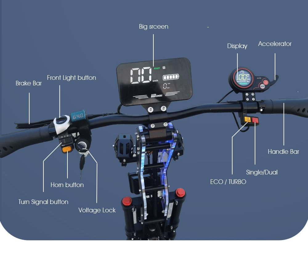 Max Speed : about 100-120km/h (have 3 gears) (can limited speed by ECO button) |